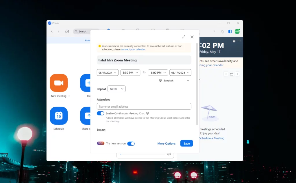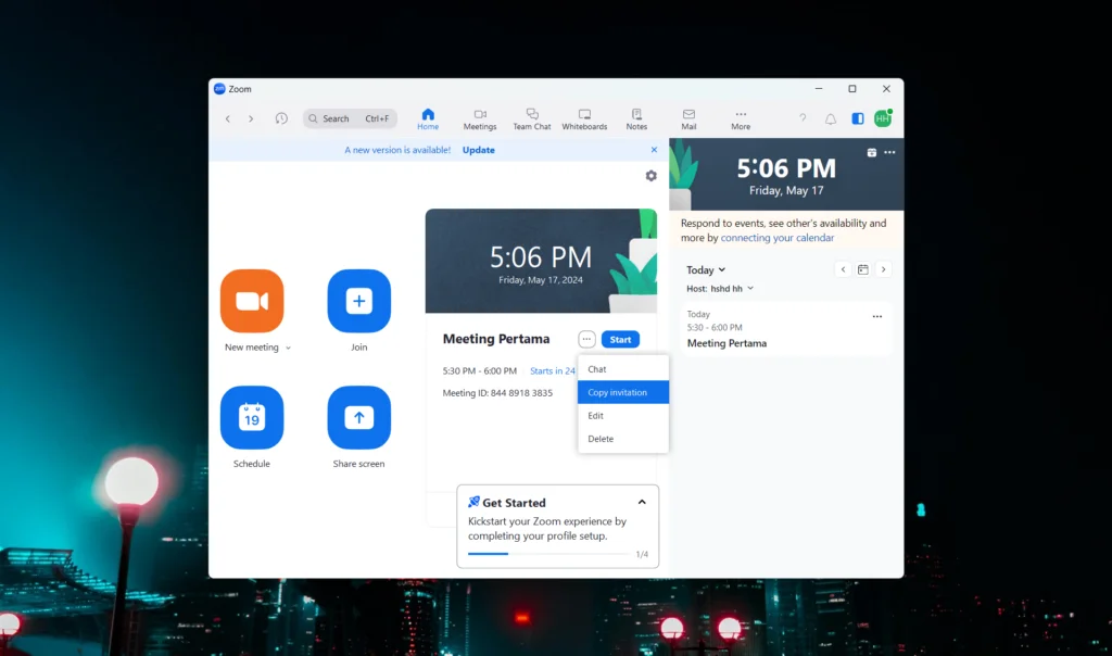 Selamat schedule meeting kamu sudah berhasil dibuat, jika kamu ingin mengundang teman, rekan dan lainnya, kamu bisa klik pada titik tiga Schedule Meeting yang kita buat tadi.